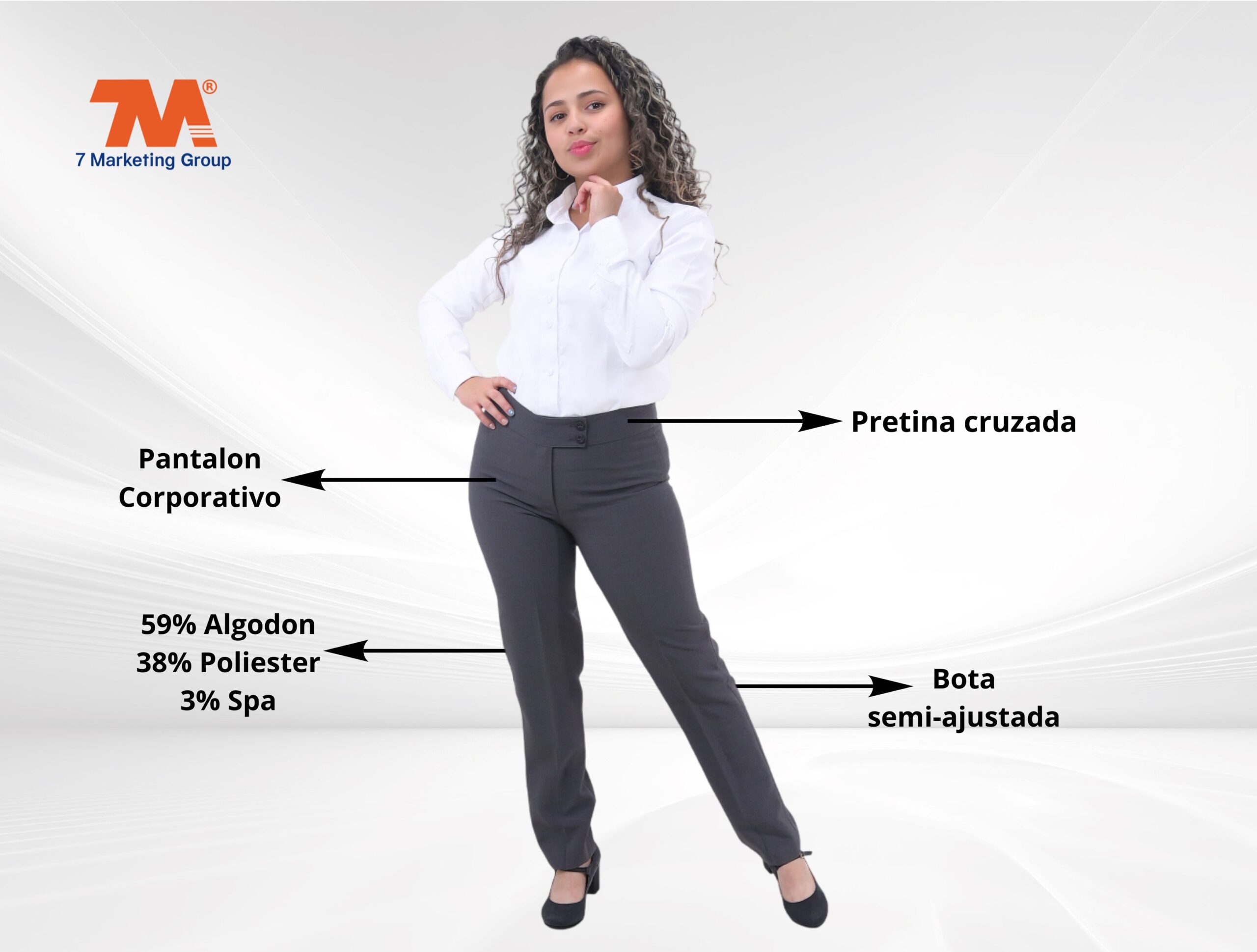 Pantalón corporativo: confeccionado con textiles suaves, resistentes y elegantes como gabardina, lino o mezclas poliéster–algodón. Ideal para oficinas, áreas administrativas, comerciales o de atención al cliente.
